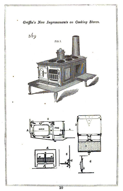 LETTERS PATENT to James Kent Griffin, of the Village of Waterdown, in the County of Wentworth, Ironfounder, for the Invention of “Several new and useful improvements on Cooking Stoves.”Quebec, dated 7th September, 1852.