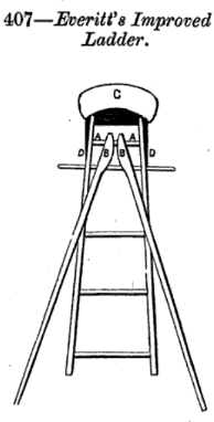 It consists in a chair, or platform, surmounting the ladder, also of poles, and supporters, longer than the ladder, broadened at the top, and bevelled, or prepared to rest against each other, through holes which a horizontal bar passes.