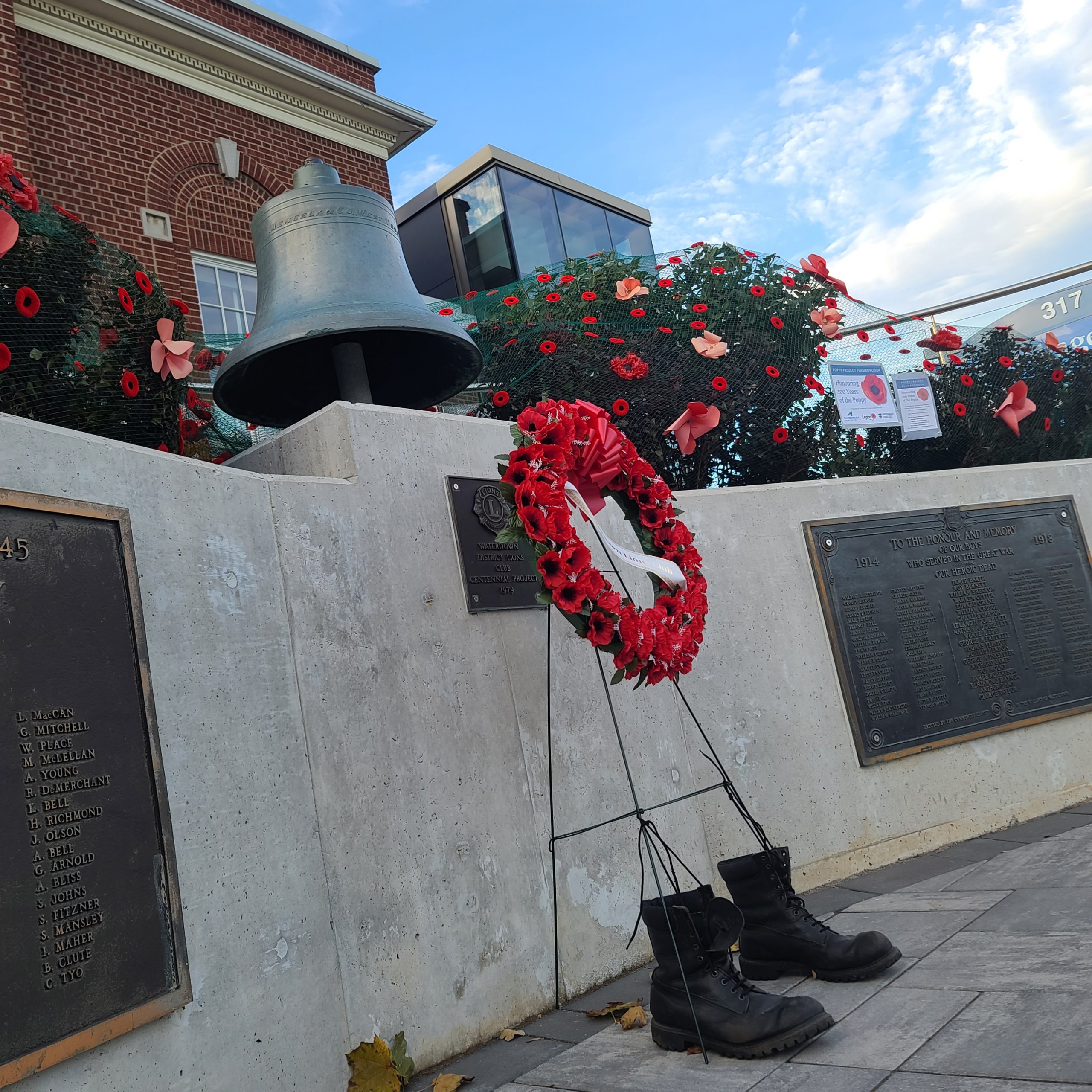 Our display in the upper level of the Waterdown Public Library remained for the month of November. We also had a small display in the Archives to celebrate the 100th anniversary of the poppy. While the Remembrance Day ceremony at the Legion this year was private, the Poppy Project at Memorial Hall allowed the public to remember in their own way, decorating one of Waterdown's memorials with homemade poppies.