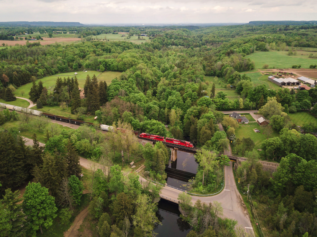 Track design fundamentals were developed in Britain and the United States in the 1830s-40s. By the time construction of rail began in Canada, track was more or less standardized. The structure includes rails, ties, ballast and track fastenings – when assembled, they provide a smooth riding surface for trains. Due to the stresses track is subjected to, this system must be of high quality and robust. Each element of the system was designed with safe, economical operation in mind, as well as assembly and maintenance. It wasn’t just the rail that had to be built – signals, bridges, tunnels, and stations were all a part of the vast network. Flamborough posed a challenge to rail travel with its escarpment and rolling rural topography. In Waterdown, the Grindstone Creek had to be moved to facilitate the introduction of the Canadian Pacific Railway - a fact often shocking to those not familiar with local rail history. Most memorable to the general public are the passenger stations, where travellers would arrive and depart, mail and telegraphs were sent and received, and freight business for the local community was conducted.