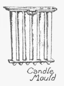 In a room filled with the hot, honey smell of melted beeswax, the work of laying up piles of smooth Moravian candles was superintended. Into carefully saved moulds the women fitted tight strips of string before pouring in the hot wax. The cold of the unheated storeroom hardened the candles so that slender yellow tapers slid easily out of the moulds. Rubbing and polishing by warm hands smoothed the golden cylinders and pointed the wick ends. Polished wooden trays, with holes cut to fit the candles, were placed ready for use.