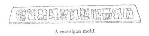 Springerle cookies, aniseed flavoured and hartshorn leavened, were made with the special pearwood mould that brought out in sharp relief individual pictures when it was pressed lightly over the dough. Long before this final embellishment, the eggs and sugar had been beaten for an hour! Marzipan, the old-world confection among German people considered the principal Christmas “sweet”, took hours of skilful labour before the almond-flavoured forms of apples, peaches, pears and flowers, moulded by nimble fingers, were placed in a tight container. For the flat mint-wafer candies they made from a simple recipe of sugar boiled in water, the tangy oil flavouring was extracted months in advance from meadow balsam and peppermint, which had been gathered in the hollows by springs at the season when their fragrant leaves would shed the strongest effusion.