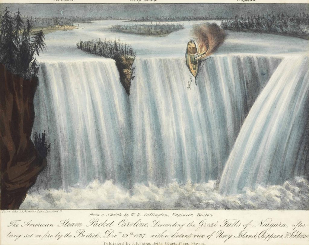 Although no records appear to exist documenting the activities of these volunteers at Chippewa, it is probable that they were witness to the capture of the little forty-ton steamer “Caroline” that was ferrying rebels across to Navy Island from the American side, and the subsequent burning of this boat in the Niagara River. The spectacular burning of the “Caroline” marked the end of Mackenzie’s Rebellion, and men returned home to families and to prepare for the spring farm activities following this incident.
