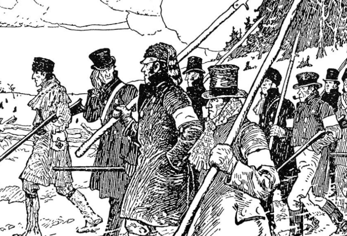 The volunteers met at Wellington Square on the morning of the 25th, reaching Lundy’s Lane the following day, and moving to Chippewa, a mile above the Falls, on December 27. Here they joined other men from the East and West Flamborough area who were members of the 2nd Regiment of the Gore Militia under the command of Colonel William Chisholm.
