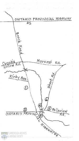 In 1808, John Green (d. 1835), a United Empire Loyalist from New Jersey arrived in West Flamborough and erected several mills. It is from this family that the name “Greensville” is derived. Crook’s Hollow received its name from an ambitious Scotsman, James Crooks, the man who was largely responsible for the early industrial development of West Flamborough.
