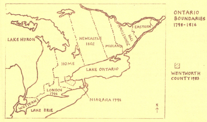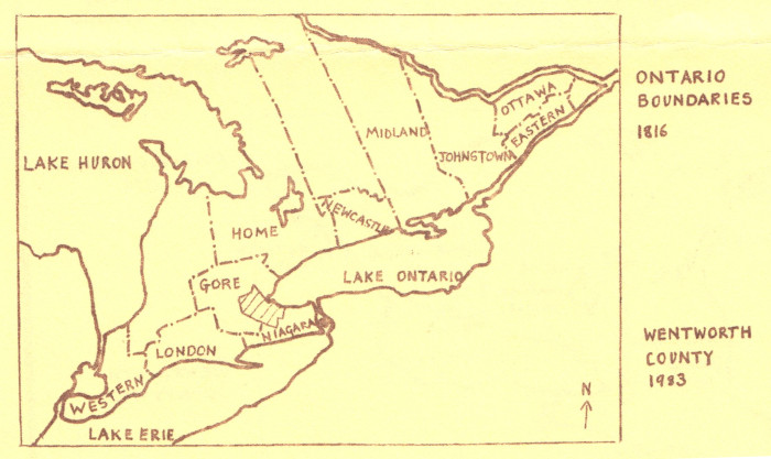 In 1816, land around the head of the lake was formed into a new unit — the District of Gore — the entire area of Wentworth County was now within a single district.
