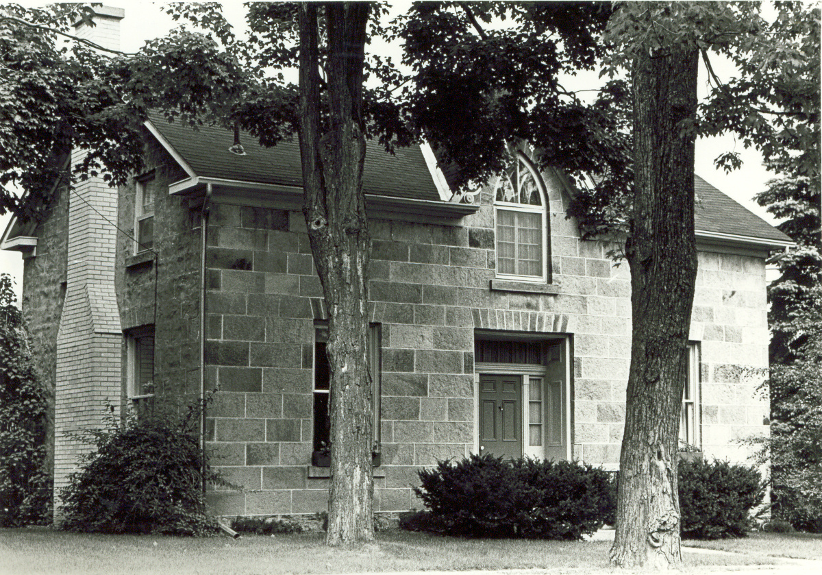 The elegant cut-stone house is now the home of Mrs. Hamilton Cook, and is an outstanding early example of the Ontario Vernacular style — rectangular in shape, one and one-half storeys and a centre gable. The house is situated on a well-kept lot, adjacent to Nicholson and Stetler’s Jam factory, and close to several other fine stone buildings on Mill Street North.