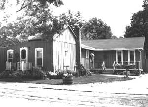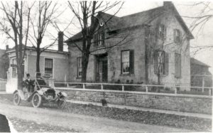 One of the finest buildings on Mill Street, it was probably built between 1850 and 1855. The stone cottage is part of the property that Absalom Griffin sold to David Davies for twenty five pounds in 1851. The large garage was moved from the Planing Mill across the street where it had been used to store coffins.