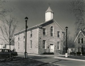 As a sign of Waterdown’s importance to the township, the Council of East Flamborough bought the site for a town hall in 1856. A year later this magnificent classical two storey building was opened. Built of local quarried limestone, it was designed by local builder Walter Grieves and carpenter John Graham.From 1979 to 2015 it served as the village library, and mounted inside were the gravestones of two early Waterdown settlers, Alexander Brown and Merren Grierson.