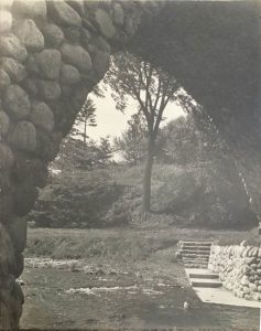 No money was made available for any work in the park until 1938. The first suggestion of a bridge being part of the park improvements occurs in the records of the June 1938 meeting of the Knowles Bequest Board, a group of five Dundas businessmen, given the responsibility for carrying out Knowles’ instructions. Two months later, the Chairman of the Board, H. Grahan Bertram, President of Bertram’s Canada Tool Works in Dundas, met and discussed with R. K. Palmer of the Hamilton Bridge Company and County Engineer, Major Hugh Lumsden, ideas for the proposed bridge. Submissions from construction companies were requested and in September, the approximately $4,000 tender of contractor, Ernie H. Greenwood of Dundas for a unique cobblestone bridge was accepted.