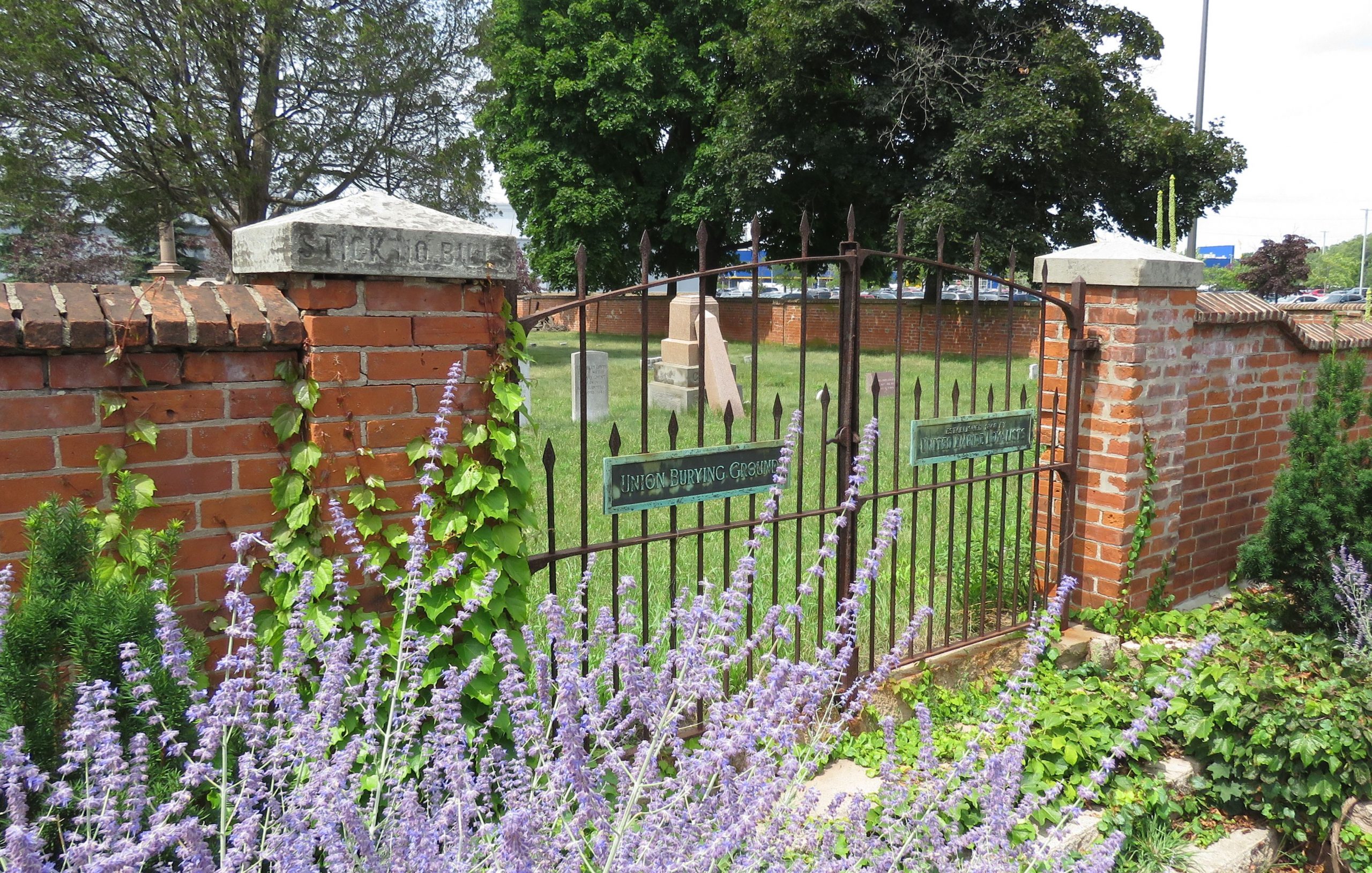 “Union Burying Ground. Established 1848 by United Empire Loyalists.” So read the two bronze plaques ($45 each in 1934, and paid for gratuitously, according to cemetery board minutes) on the two iron gates to the site (original costs of the gates, 15 pounds Canadian currency). The Cemetery is on the corner of a lot that is situated in “Brant’s Block, on the south-westerly line of the Township of Nelson, near Wellington Square”.1 In present day language, the burying ground is at approximately 1000 Plains Road East, Burlington, at Job’s Lane, originally the Purchase Line or the Halton-Wentworth County Line, and the first survey line in Western Ontario run by Augustus Jones in 1784, from Burlington Bay, just west of the present Skyway Bridges, to Arthur, Ontario.