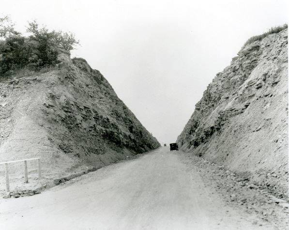 The end of the World War I saw the beginnings of the great changes in travel that were to come with the invention of the horseless carriage – the motor car. By the early 1920s, motor cars were firmly established in the Hamilton area as the new mode of transport, despite the lack of good roads. Between 1920 and 1930, the provincial government was forced to tackle the problem and a flurry of construction and improvements were initiated. To provide a direct connection northwards to Guelph and the Bruce Peninsula, a “cut” was made through the Niagara Escarpment, following the townline or boundary between East and West Flamborough Townships.