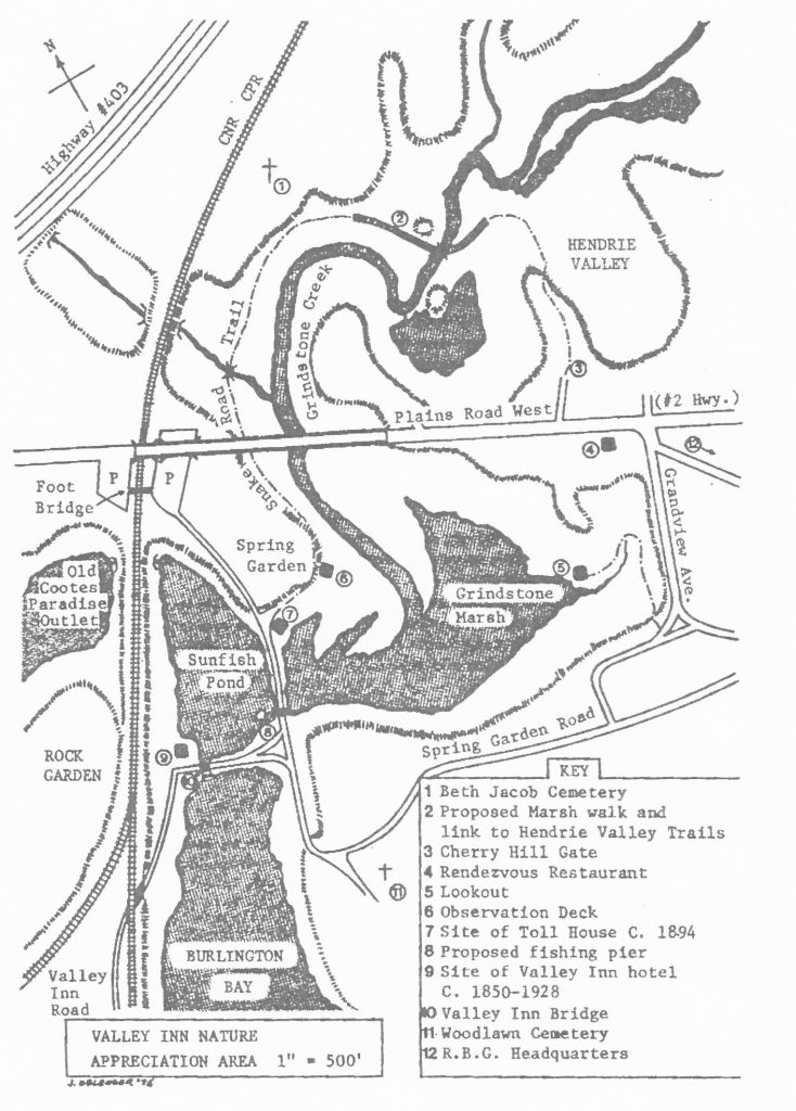 For many years, before changes to the landscape were made by the construction of the Desjardins Canal, the opening of the Snake Road and the building of the Grand Trunk Railway, the site of the Valley Inn was an important crossroads for aboriginal peoples and explorers as they passed between the Head-of-the-Lake and the Grand River to the west. The arrival of early settlers on their way to Dundas, Flamborough and Waterloo County all added to the importance of this crossing at the original entrance into Cootes Paradise.